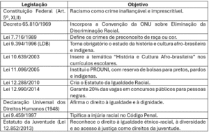 No Brasil, o Estatuto da Juventude (Lei 12.852/2013) reconhece, em seu artigo 3º, inciso VII, o direito à igualdade e à valorização da diversidade, incluindo a diversidade étnico-racial, como fundamento da cidadania juvenil. O artigo 5º do mesmo Estatuto assegura ainda a proteção contra todas as formas de discriminação e violência, reconhecendo que os jovens negros enfrentam desafios específicos, fruto de um histórico de exclusão.